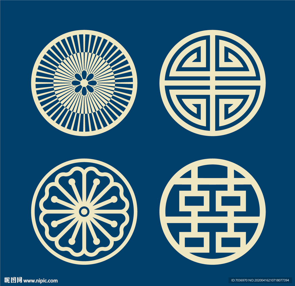传统圆形纹样蜡染纹样4个图片