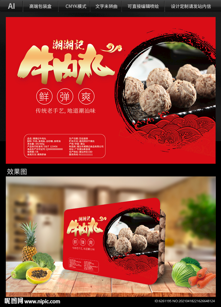 手打牛肉丸包装设计图片