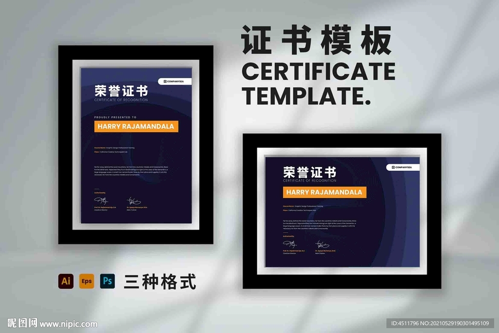 荣誉证书时尚横版竖版图片
