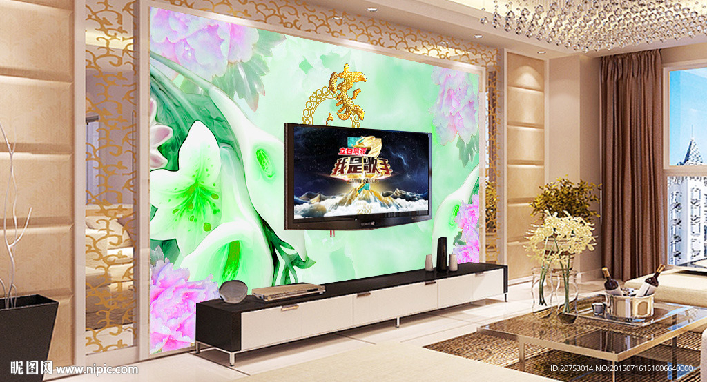 玉雕家和富贵电视背景墙图片