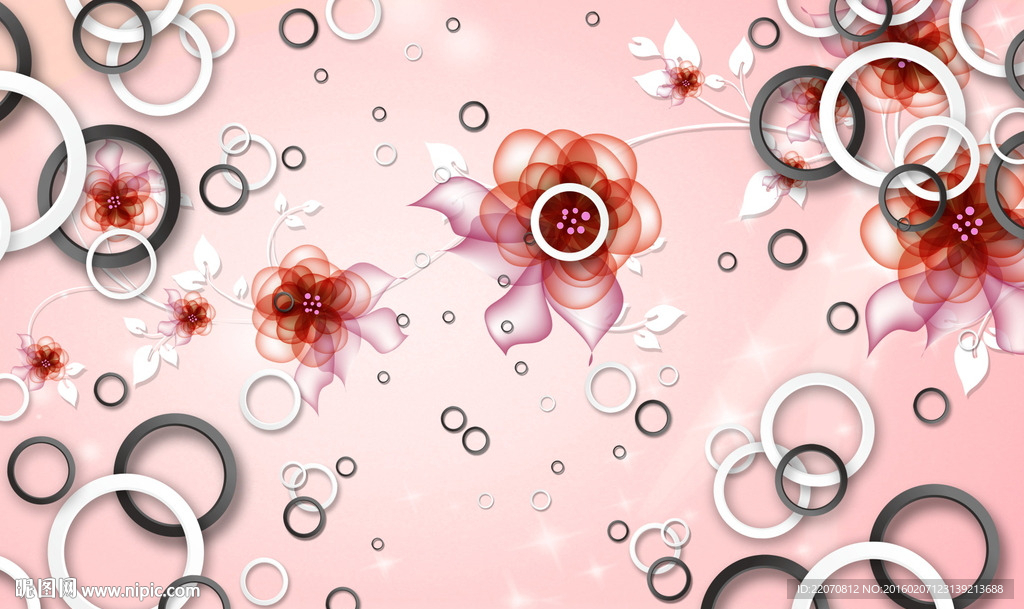 3d圆圈梦幻花朵背景墙图片