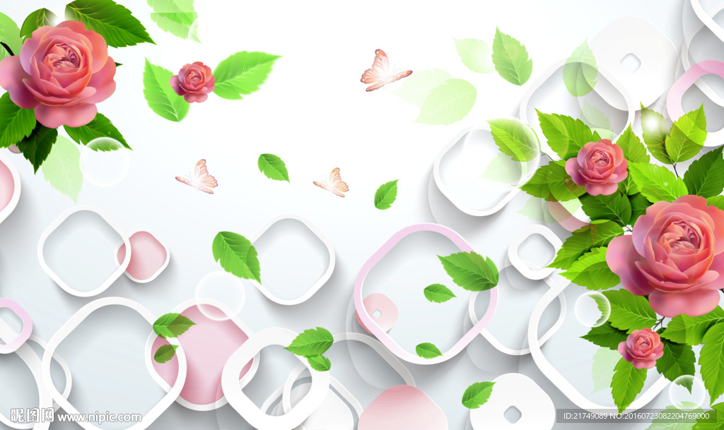 3d方块玫瑰背景墙图片