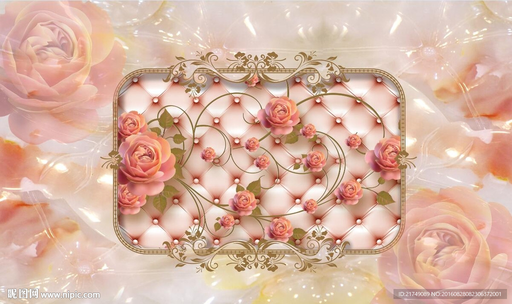 石纹软包玫瑰背景墙图片