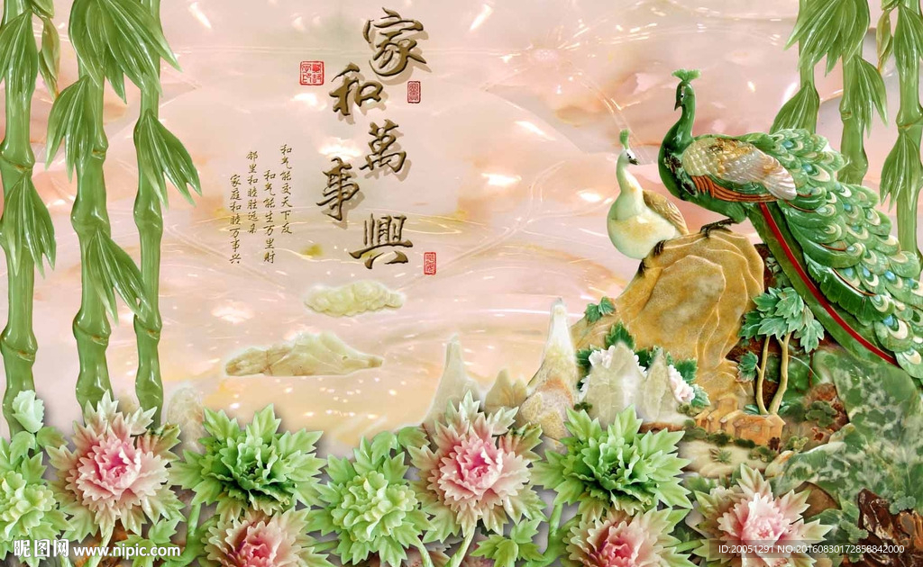 玉雕背景墙孔雀图片