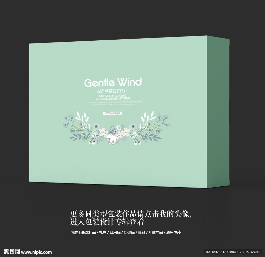 绿色森系婚礼高档礼品包装盒设计图片
