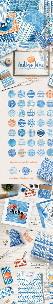 蓝色手绘水彩画图片