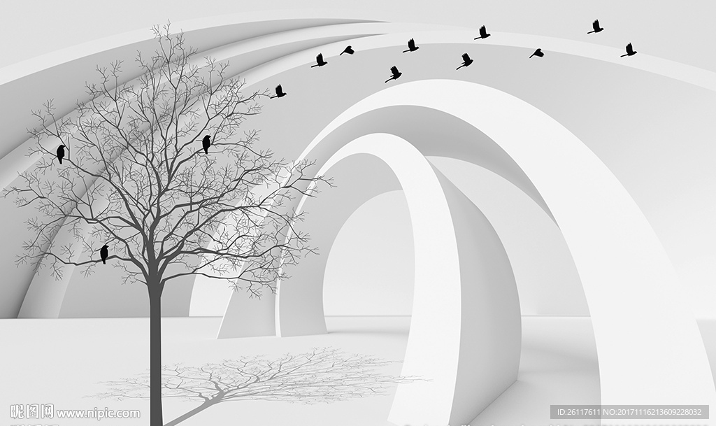 简约小树小鸟3D空间电视背景墙图片