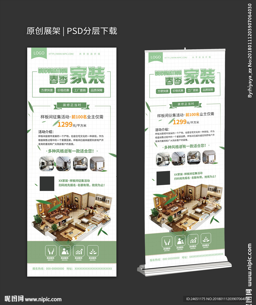 小清新春季家装节促销展架图片