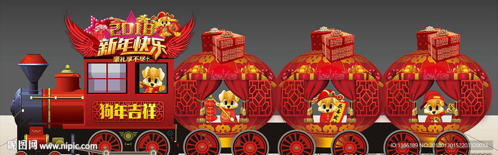 新年美陈灯笼火车拍照背景图片