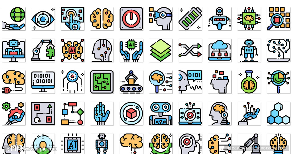 人工智能彩色线性图标图片