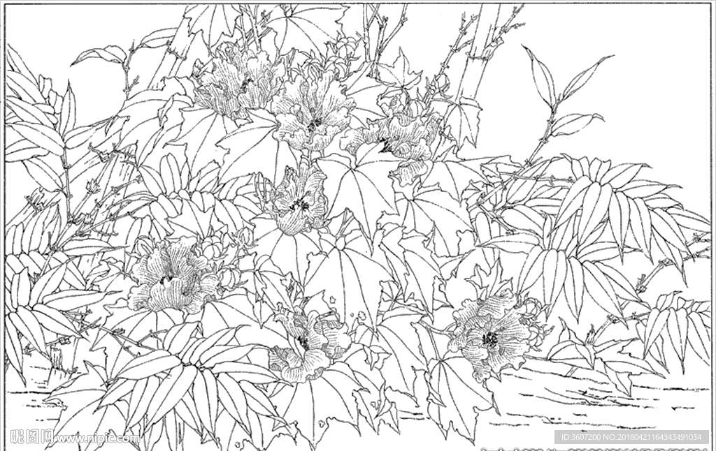 芙蓉花线描 芙蓉花白描 芙蓉花图片