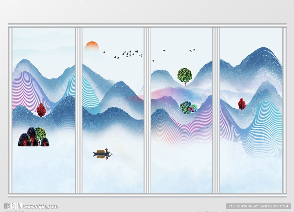 抽象水墨山水移门图片
