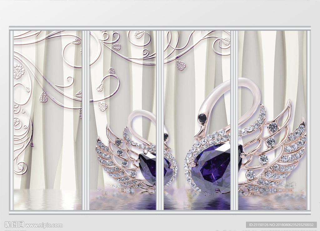 3d浪漫紫色宝石天鹅移门图片