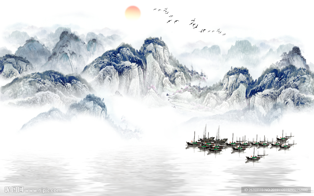 新款水墨山水装饰画电视背景墙图片