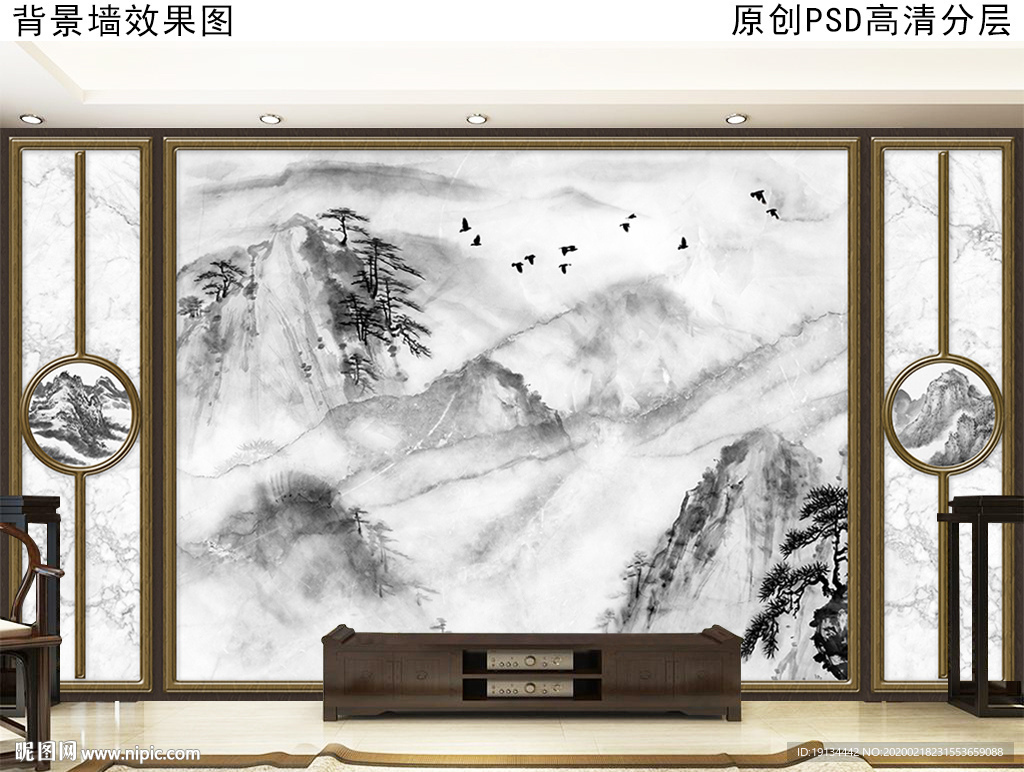 石纹山水新中式大型护墙板壁画图片