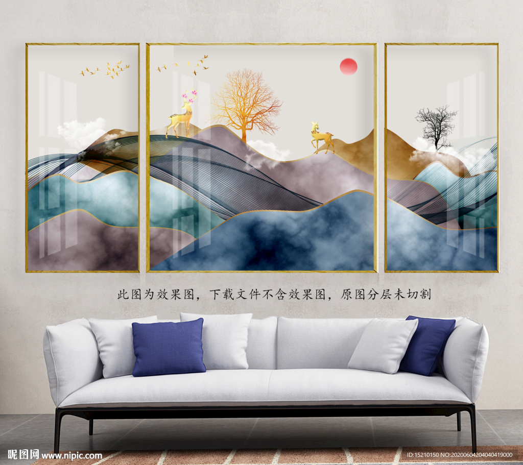 山脉抽象树客厅装饰画图片