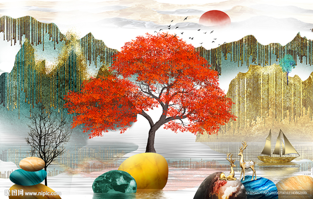 电表箱石来运转麋鹿晶瓷画装饰画图片