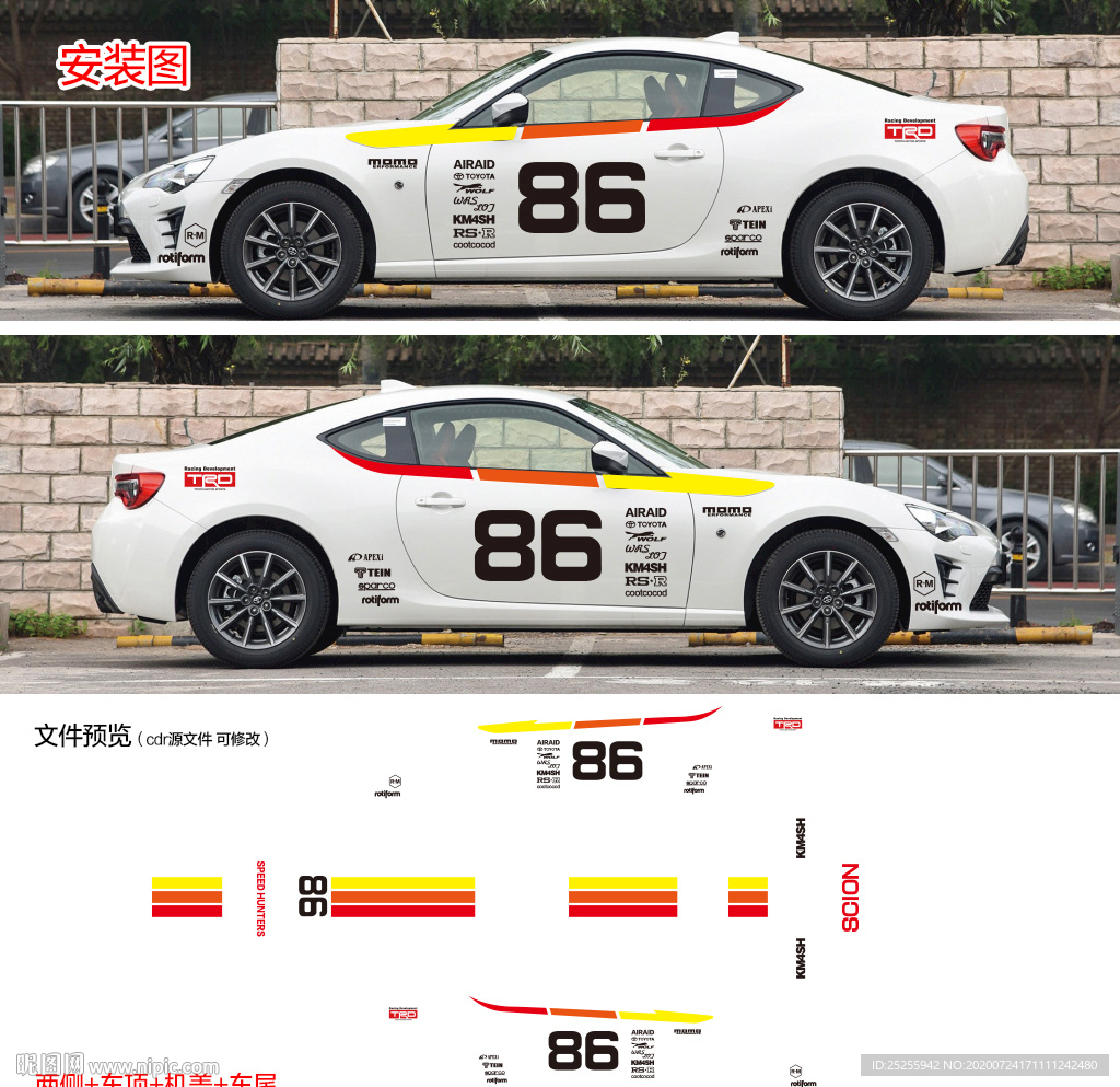 丰田86全车身车贴装饰拉花图片
