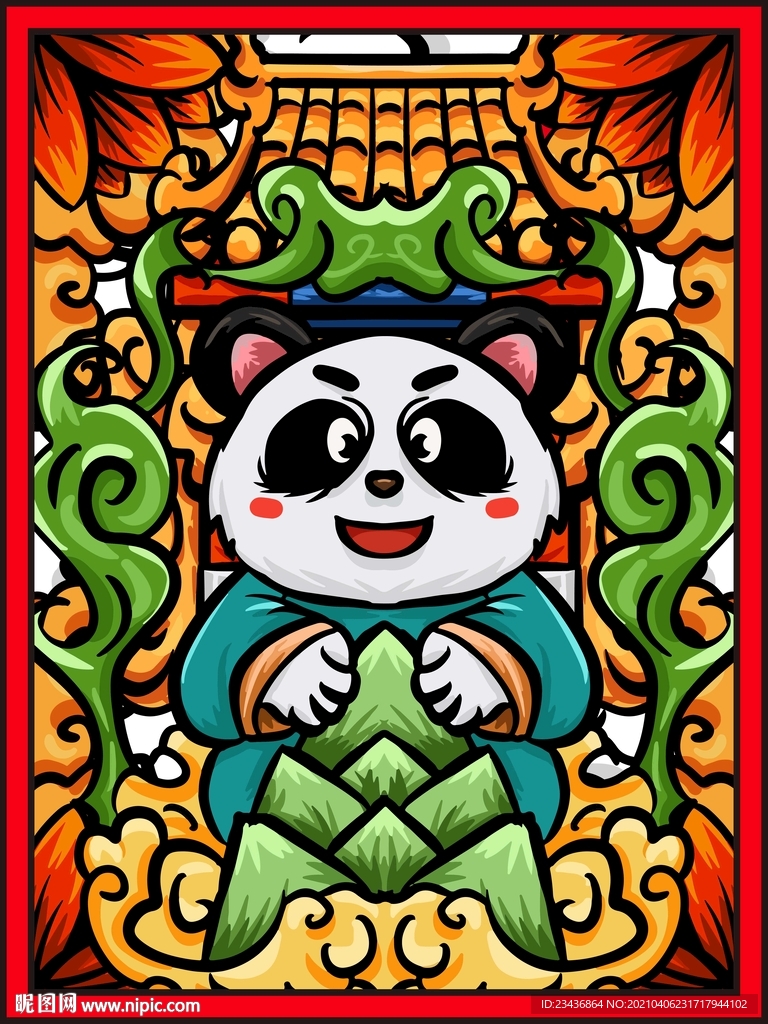 手绘国潮熊猫插画图片
