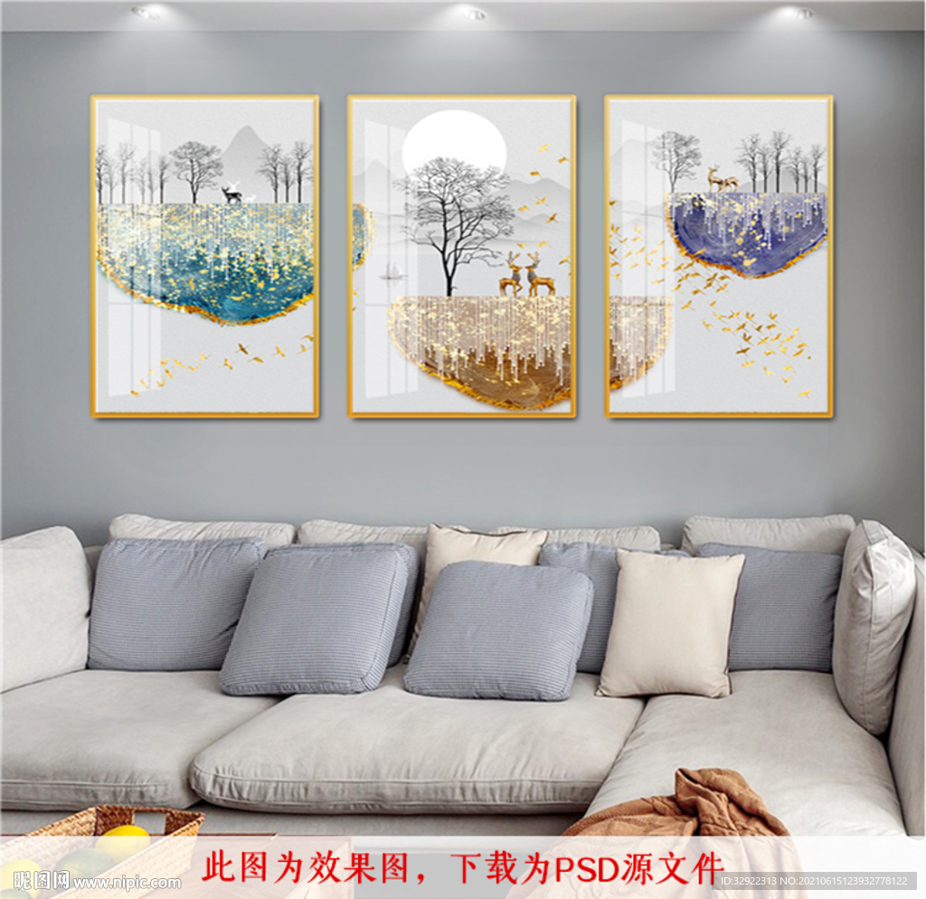 抽象线条麋鹿三联画图片