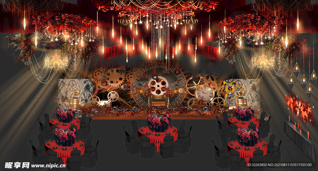 红金色复古工业风宴会效果图图片