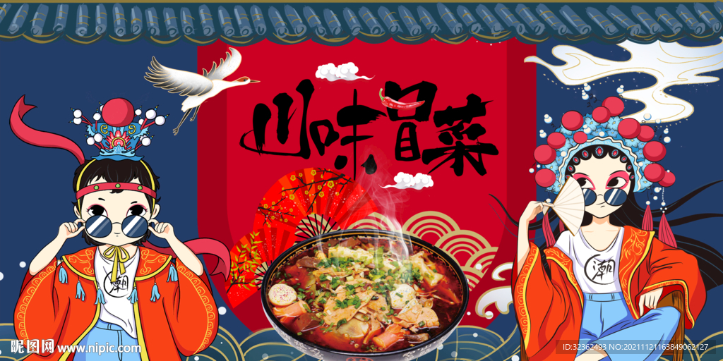 国潮川菜冒菜背景墙图片