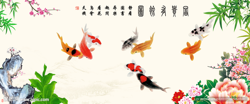 九鱼图 花鸟画图片