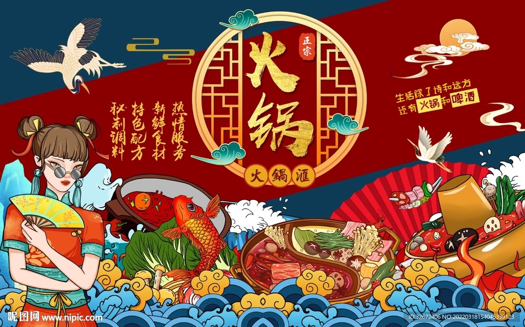 国潮美食火锅工装背景墙图片