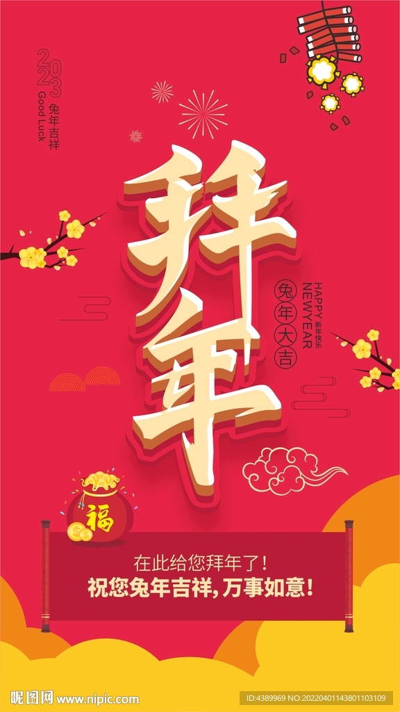2023兔年春节拜年海报图片