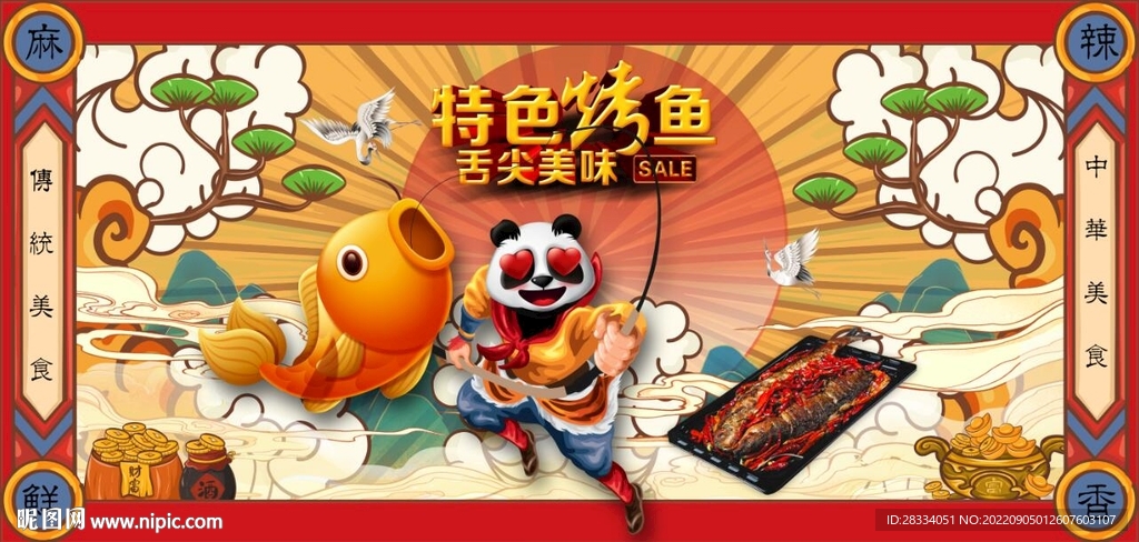 功夫熊猫特色烤鱼餐饮背景墙图片