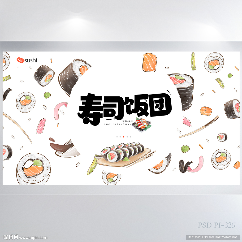 寿司饭团韩国料理背景展板海报图片