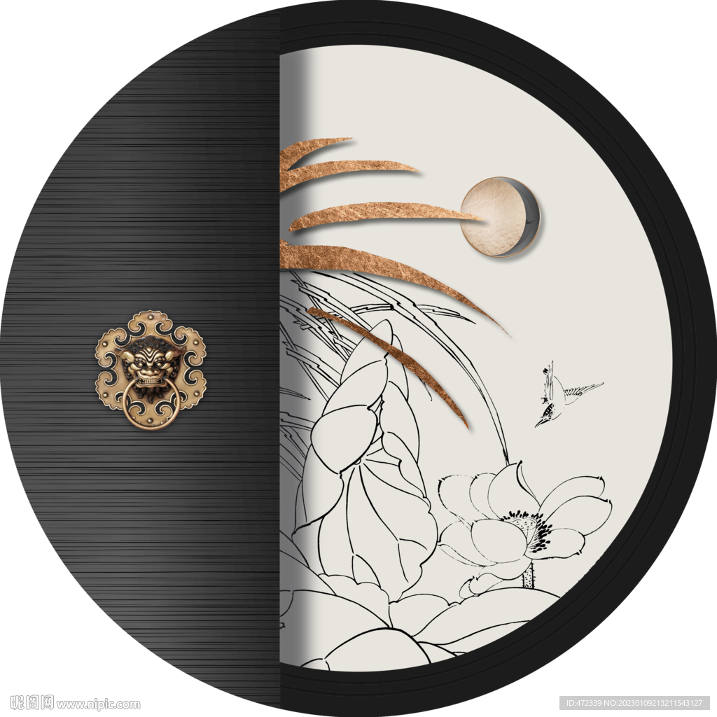 新中式线描国画装饰画图片