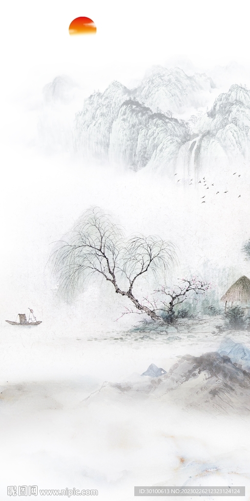 高档 山水中式玄关 TiF分层图片