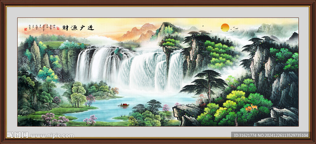 国画山水画 旭日东升 图片