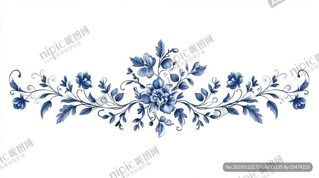 蓝白色花艺手绘图片