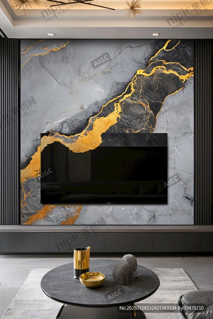 现代奢华大理石电视背景墙图片