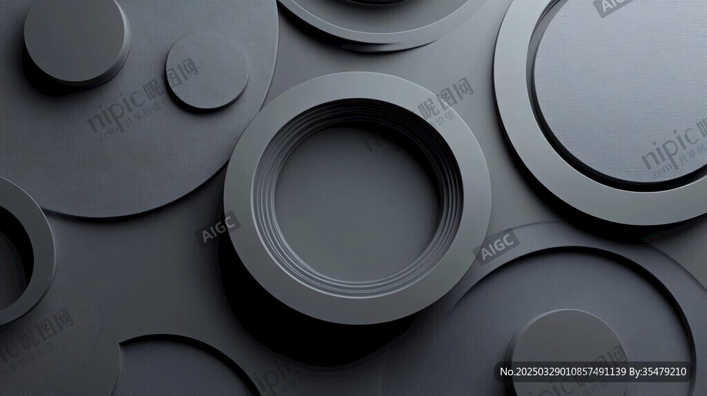 黑色立体圆环抽象背景图图片