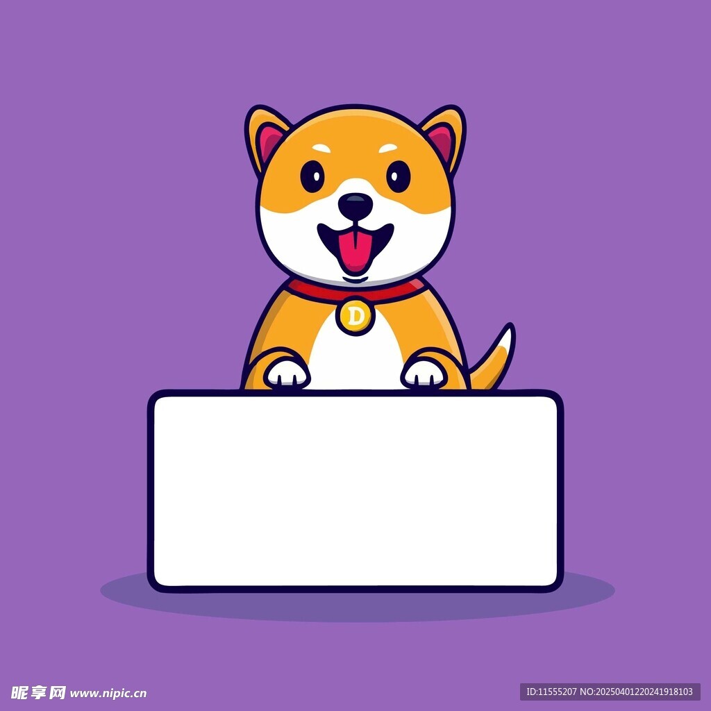 吐着舌头的柴犬面前有一块空白板图片