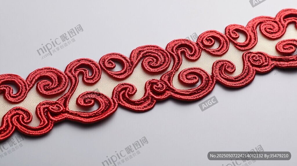 红色精美云纹刺绣花边图片
