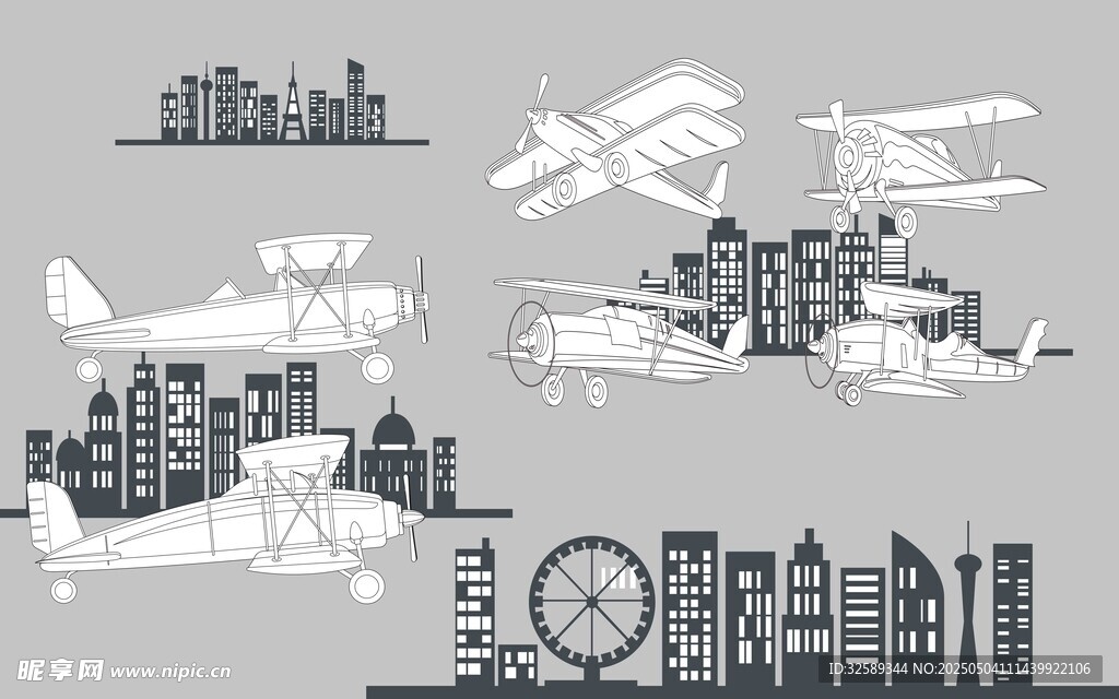 城市与飞机的创意剪影图片
