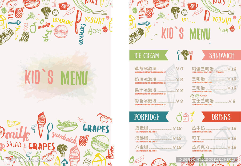 儿童餐厅菜单设计图片