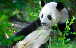 悠闲熊猫坐于绿意之中图片