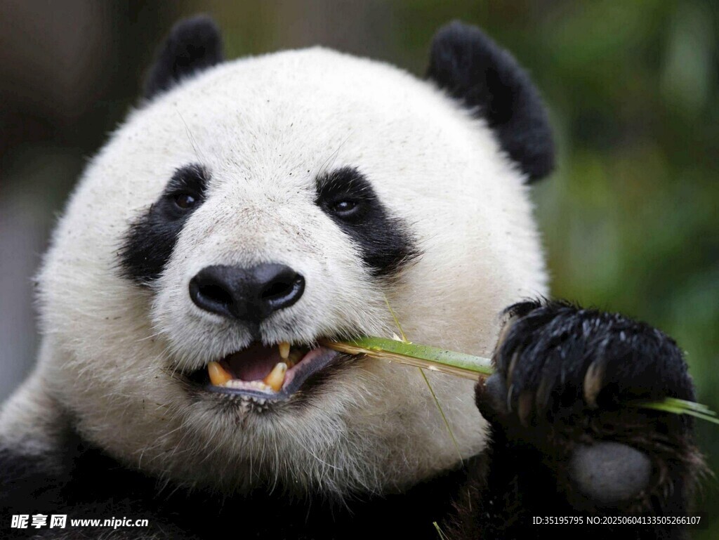 熊猫惬意进食鲜竹叶图片