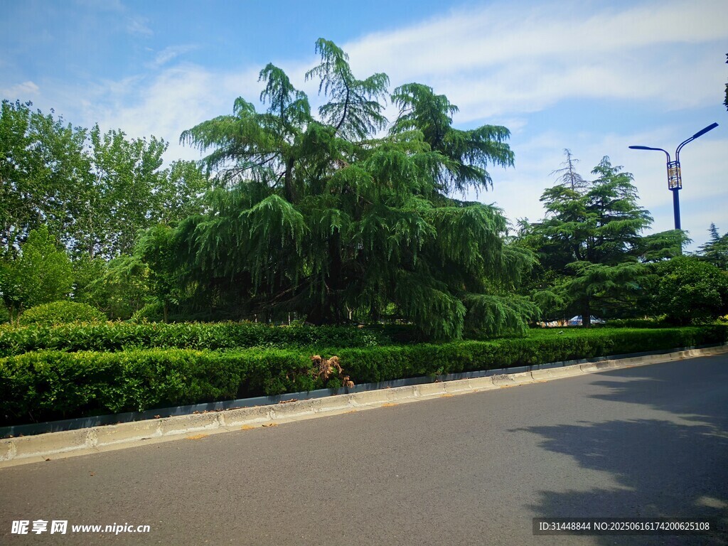 道路旁绿意盎然的景观图片