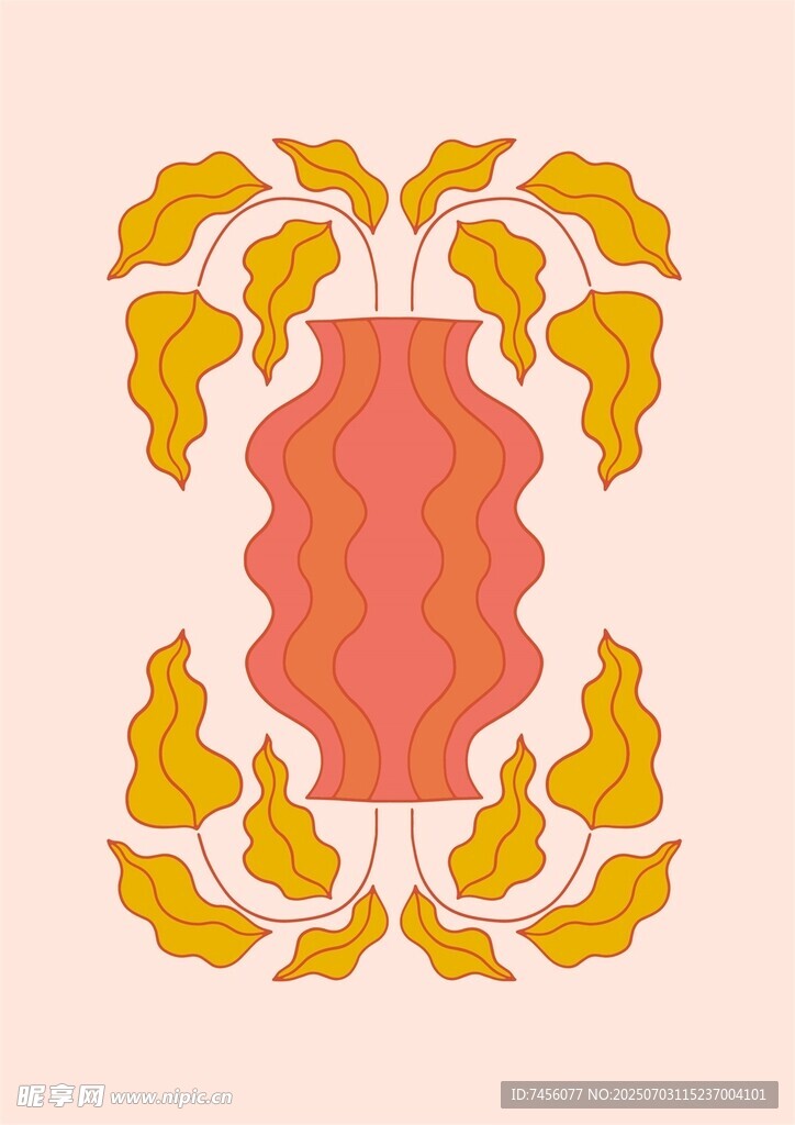 复古花瓶与花叶装饰图案图片