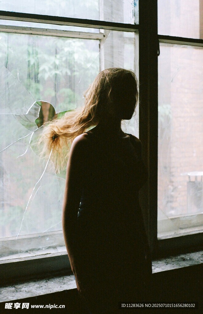 窗边女子背影图片