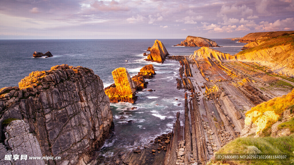 海岸壮丽风光岩石与夕阳图片