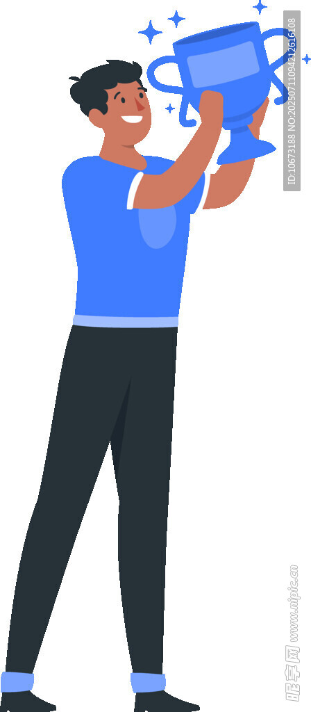 男子高举奖杯庆祝胜利图片