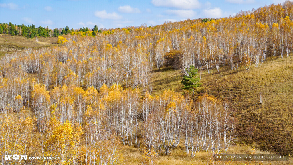 秋日山坡的斑斓树林图片