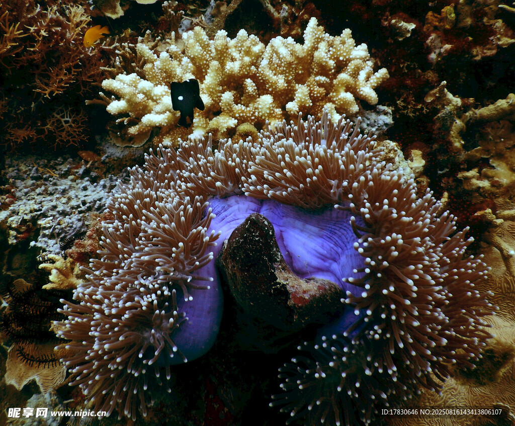 紫色海鱼藏身珊瑚丛中图片